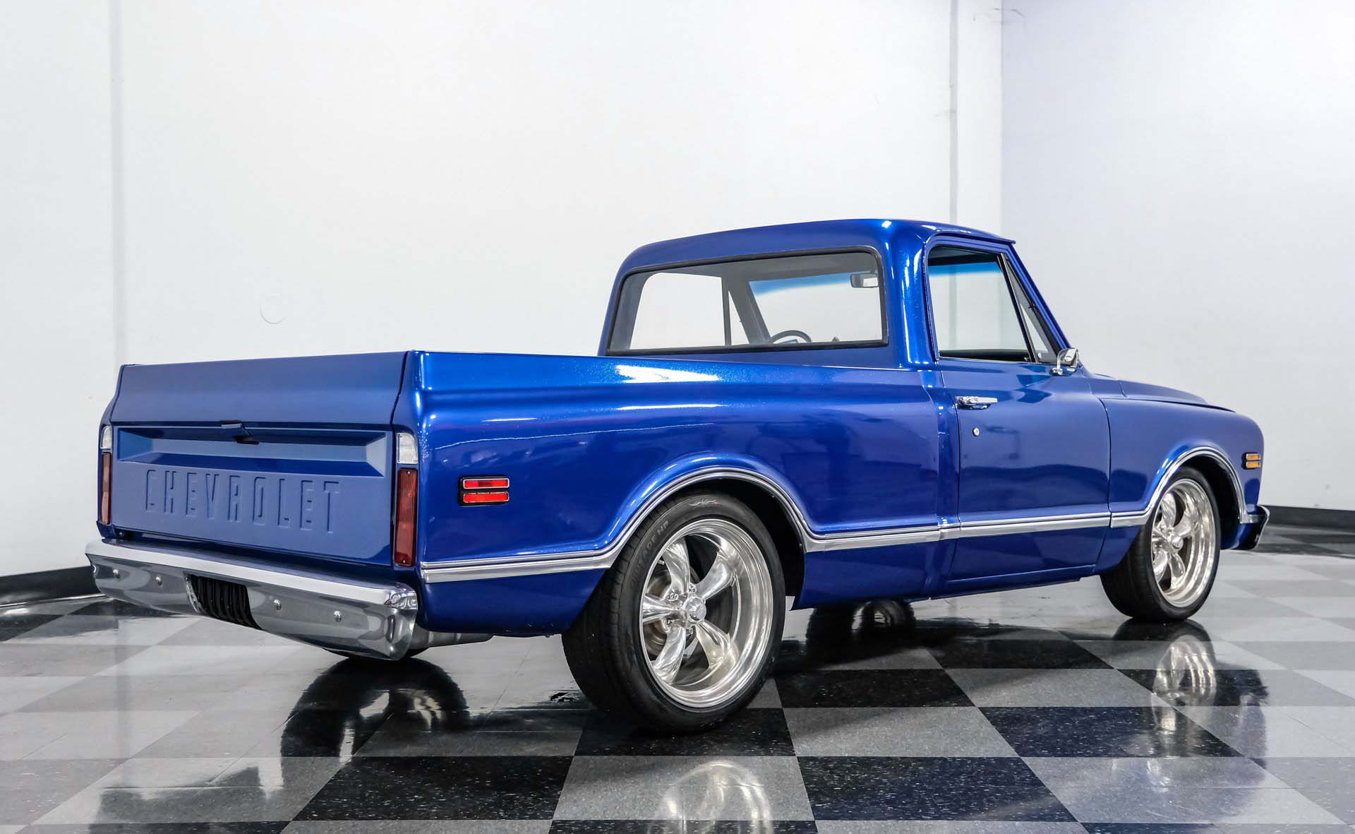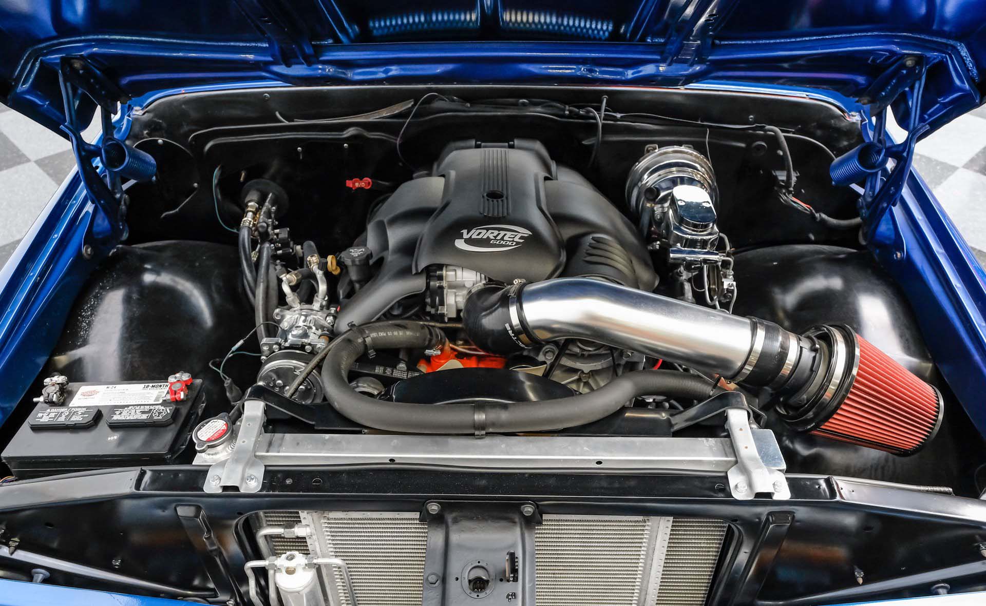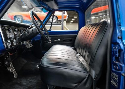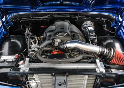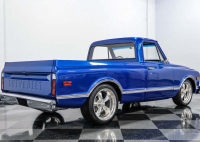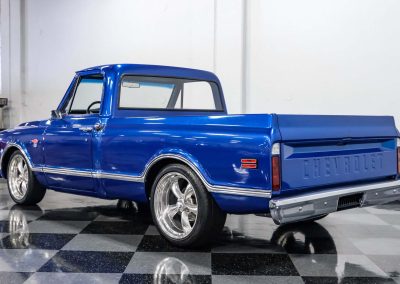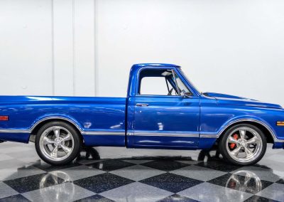 1968 Chevrolet C10 Restomod; 5.3L LM7 V8; 4L60E 4-Speed Automatic; Power Steering; Power Brakes; Front Disc/Rear Drum Brakes; Fuel Injection; Seatbelts; Vinyl Interior; Heat; Defrost; Air Conditioning; Tilt Wheel; Short Bed; Bluetooth Radio; Aux Input; AM/FM Radio; Documentation; 12 Bolt Rear Axle; Exterior Color: Blue Metallic; Interior Color: Black